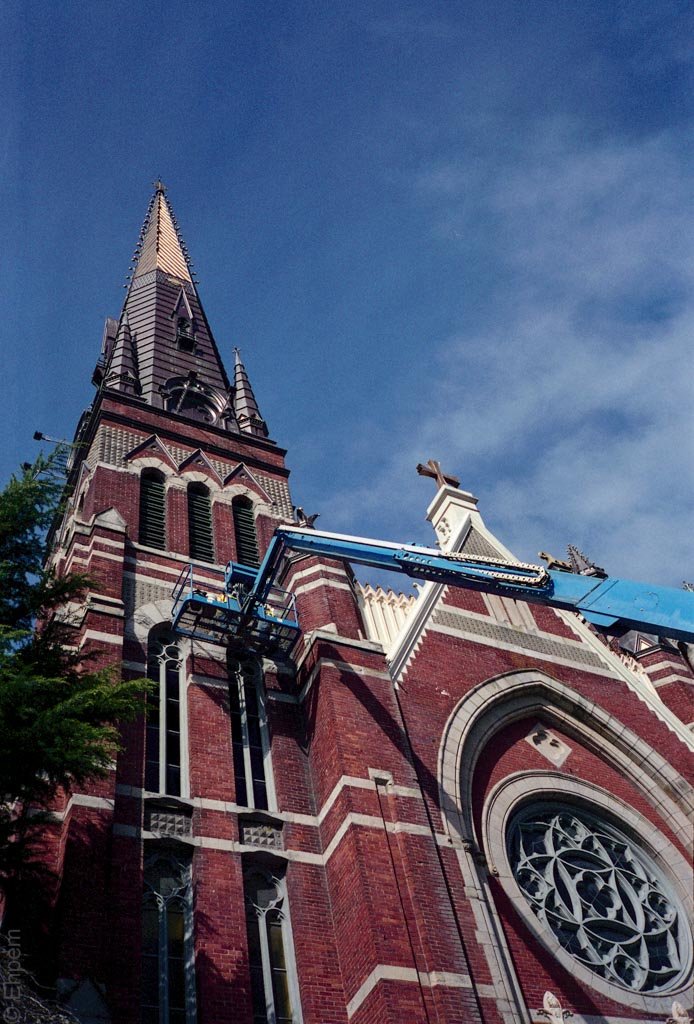 The Roman Catholic cathedral in Victoria was getting something fixed, or cleaned.