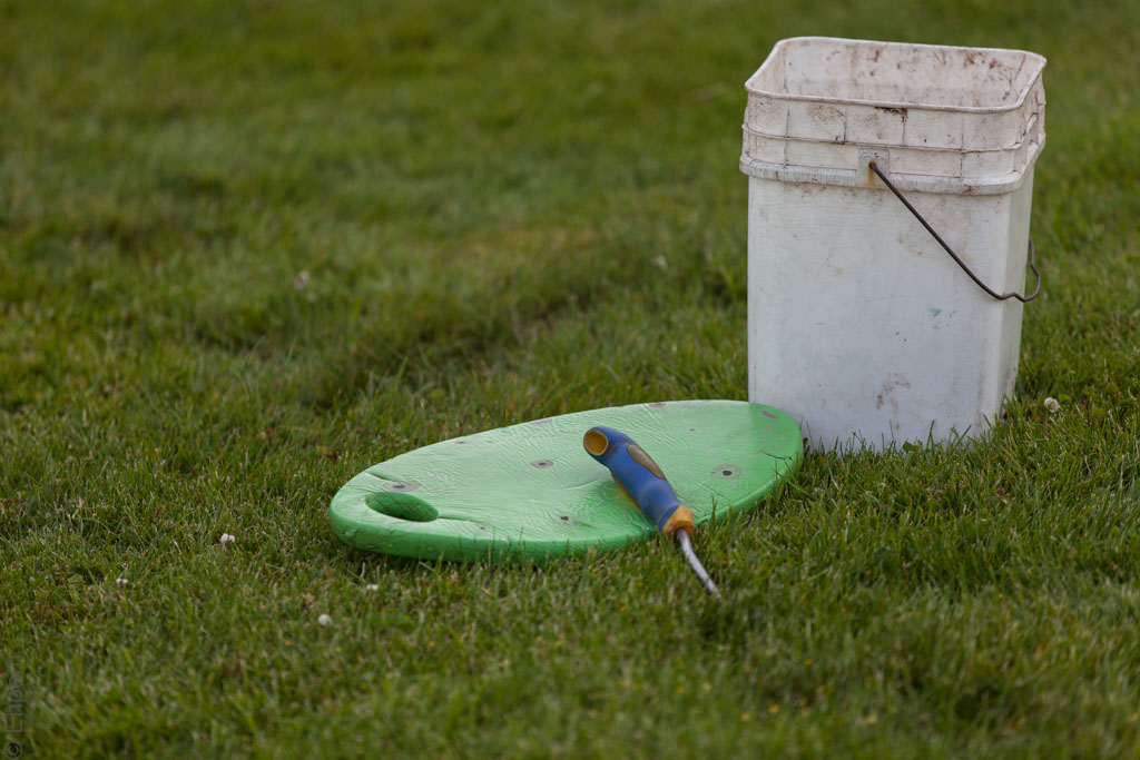 The tools of the trade for perfecting a lawn, spotted in my neighbourhood.