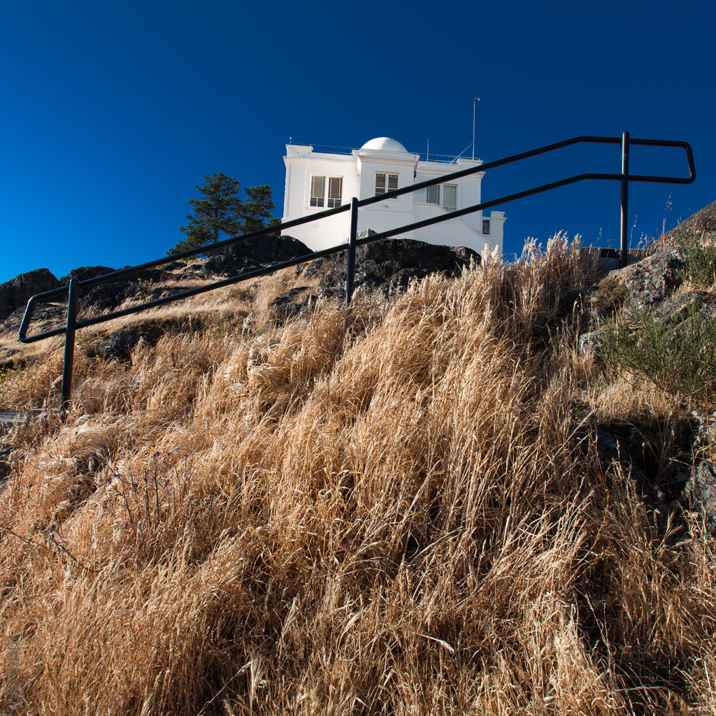 This is the front of the Gonzales Observatory, looking out over Gonzales Beach, Harling Point and the Strait of Juan de Fuca.