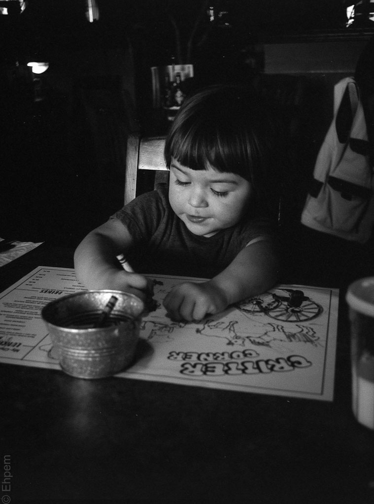 I figured the film would give me some latitude, and as it turned out the light on her face was a bit brighter than the surroundings.