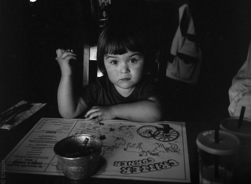 The light was quite low. I normally shoot this camera with the sunny 16 rule, but estimating light indoors is beyond my abilities.