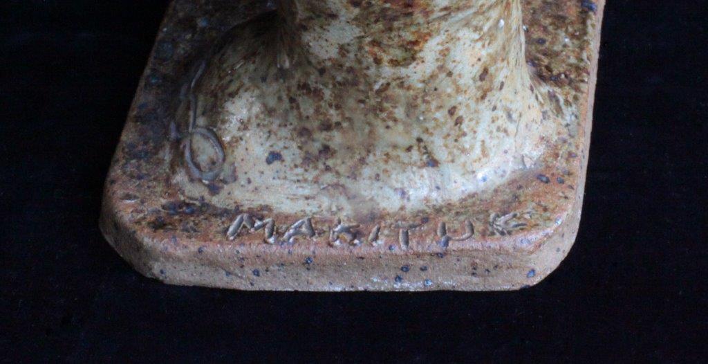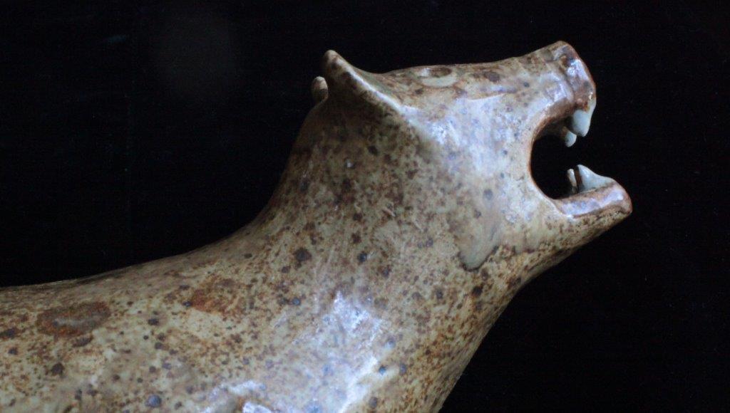 This ceramic polar bear was sculpted by Kingnait (Cape Dorset) artist Makituk Pingwartuk while a student at Kootenay School of Art in Nelson, BC.