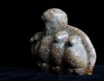 These ceramic birds was sculpted by Kingnait (Cape Dorset) artist Makituk Pingwartuk while a student at Kootenay School of Art in Nelson, BC. While we are tempted to think of them as owls, they do not completely conform to the way owls are represented and thus they may be some other species, perhaps most likely ptarmigan. Signed on the inside of base.