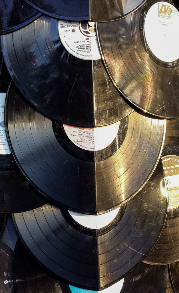 Last year I had a couple of blog posts (here and here) showing the vinyl records that have been used as siding on part of the Heriot Bay Inn on Quadra Island.