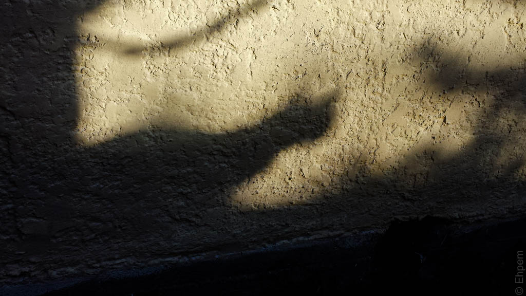 Being a bit on edge about the possibility of angry wasps, I was startled when the shadow of a cat suddenly appeared where I was looking.