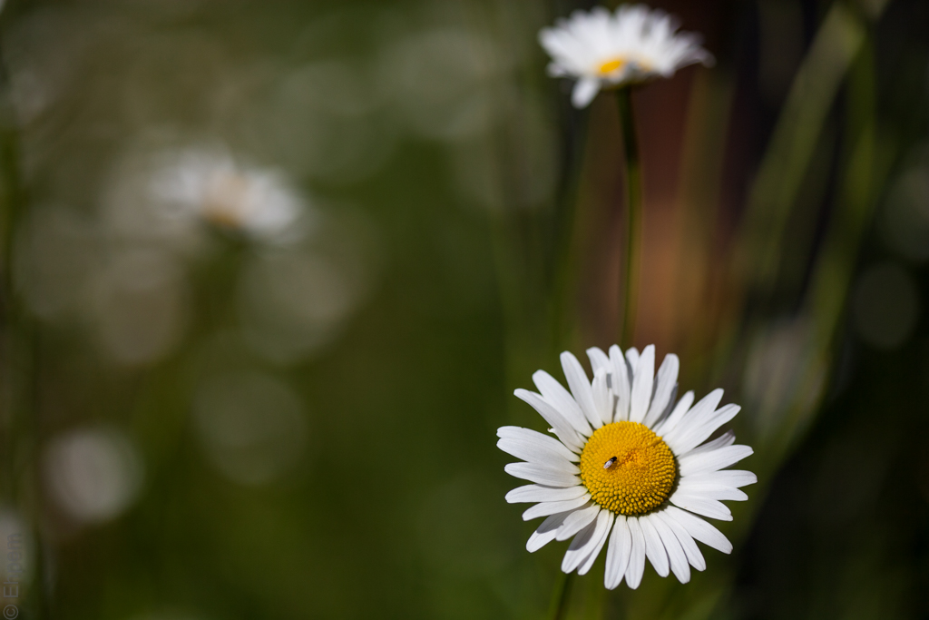I found these daisies in the summer while visiting my daughter and her family in the Comox Valley area. Previously I showed a macro from this same patch of a green-eyed fly