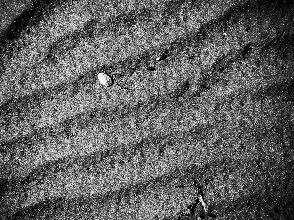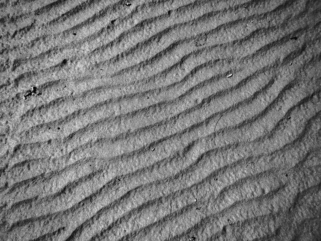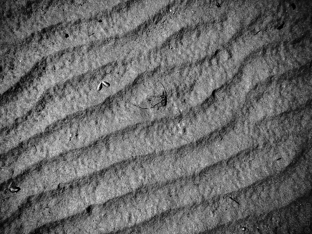 Zooming in on wave tracks one spots all kinds of natural detritus making up the sediment.