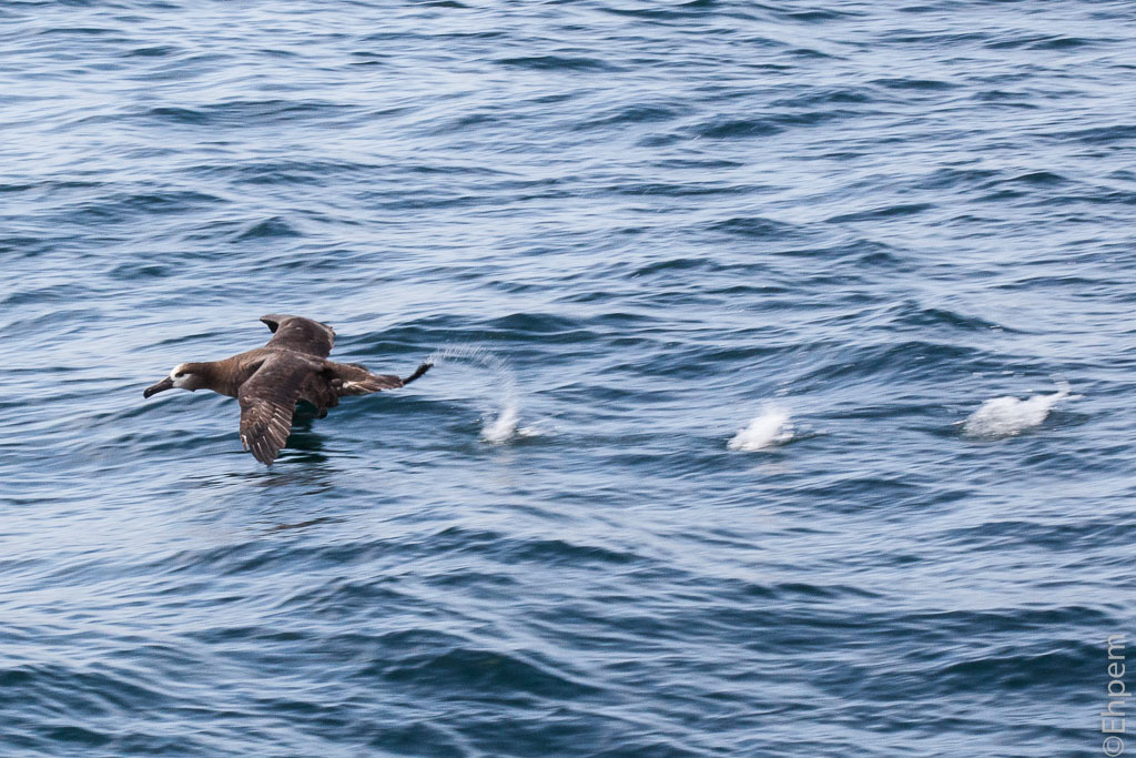 This is a black-footed albatross we saw a couple of miles west of Cape St. James, one of 13 that we counted in a short run up the west side of Kunghit Island. Many were sitting on the water surface, which explained for me, after years of wondering, how the inhabitants of the nearby 10,700 year old Kilgii Gwaay site would be able to successfully hunt them.