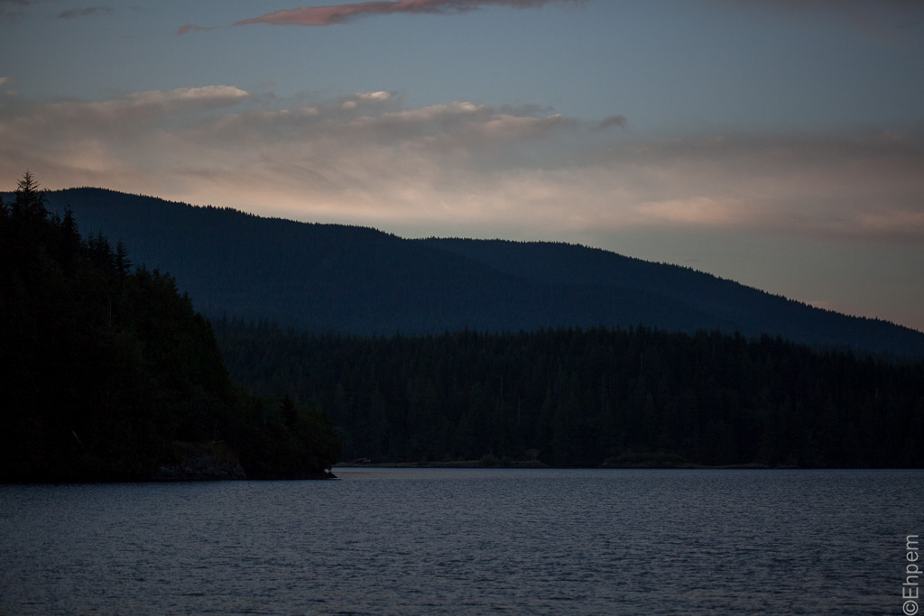 Dusk from the Passing Cloud while at anchor between cruises in Gordon Cove on Moresby Island, Haida Gwaii.
