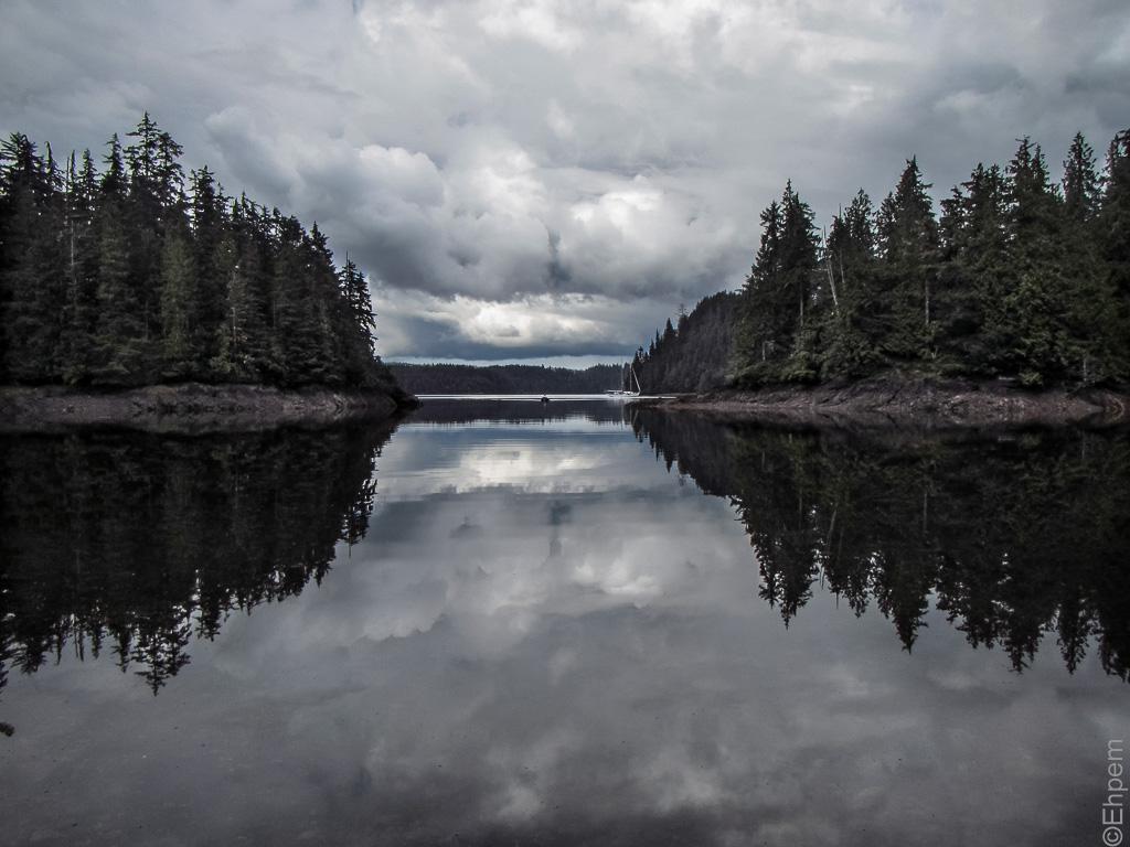 An afternoon view out from the inner part of Gordon Cove towards Passing Cloud while at anchor in the main basin.