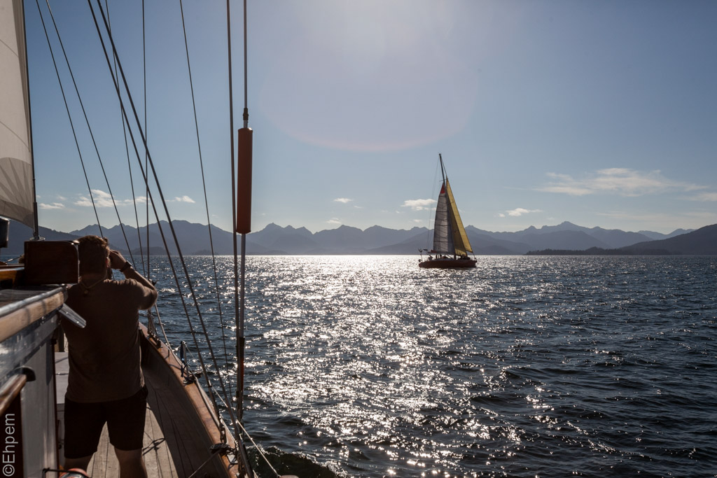 While sailing on the Passing Cloud in Juan Perez Sound we passed this boat.