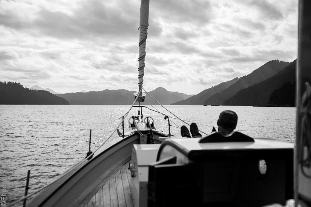 The bow was the favourite perch for the bird watchers that were guests on the Passing Cloud.