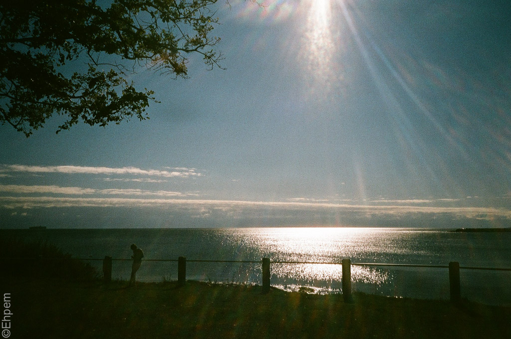 A diaphanous veil of lens flare over Ross Bay.