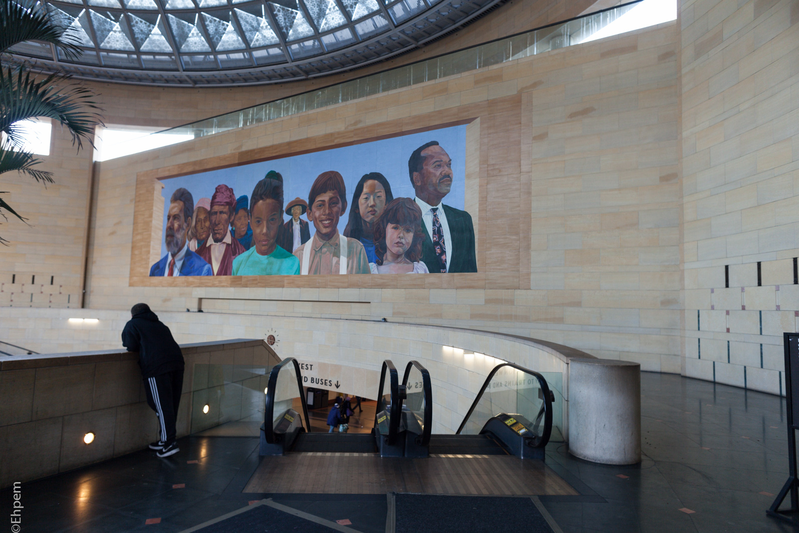 I spent a chunk of my afternoon at Union Station in Los Angeles trying to get a good photograph of this escalator and mural.