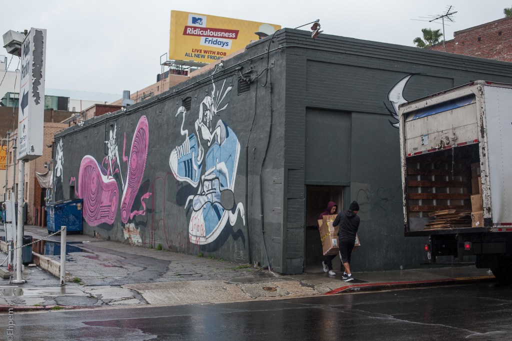 I took this photo in Los Angeles just a few minutes before another (here) that shows much of the rest of this mural at the front of the truck.