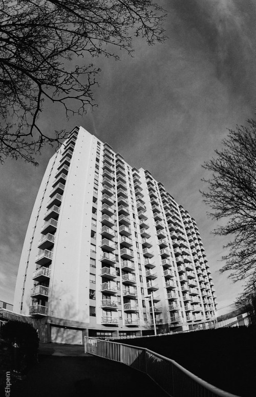 • That is a very strange association 🙂 I wonder if they used fisheye lenses to film some Avengers scenes. It is a 60s building, or perhaps early 70s, so that helps with the look too. And the lens is from the late 60s, so the vibe is a true one, Avengers or not.