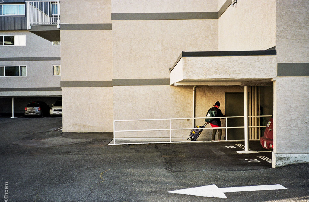 I tested the camera in January with my last roll of Agfa Vista 200. Like so many of the Canon point and shoot cameras with fixed focal length lenses this is a good performer. It handles quite well, though the ES has less of a grip on the front for hand holding than the Max appears to and there is some potential for the camera to slip. One very nice feature is that there is a manual switch to turn off the flash (one of three modes) – once the switch is set you never have to think about the flash going off unexpectedly. The CR123 lithium batteries are still easy to come by and are rated in the manual as good for 18 rolls of film with 50% flash use. The viewfinder is a bit small but the frame lines, including close up lines, are very bright and easily seen. The film advance is a bit noisier than I would like, but in most street photography settings would not be noticeable more than a foot or two away.