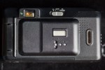 The manual indicates additionally that near focus is 0.65 m (2.1 ft) and the camera strap is the same length providing a handy measuring device to measure if too close. Non DX-coded film is metered as if ISO 25. The manual includes instructions for the date functions, and the clock is good until 2019, so this camera still has a bit of its life expectancy to go. The date battery is dead in my camera and having no use for that feature I have not replaced it. That battery, a CR2025, is held on the inside of the rear door so replacement must be done between rolls of film and requires a tiny Phillips screw driver.