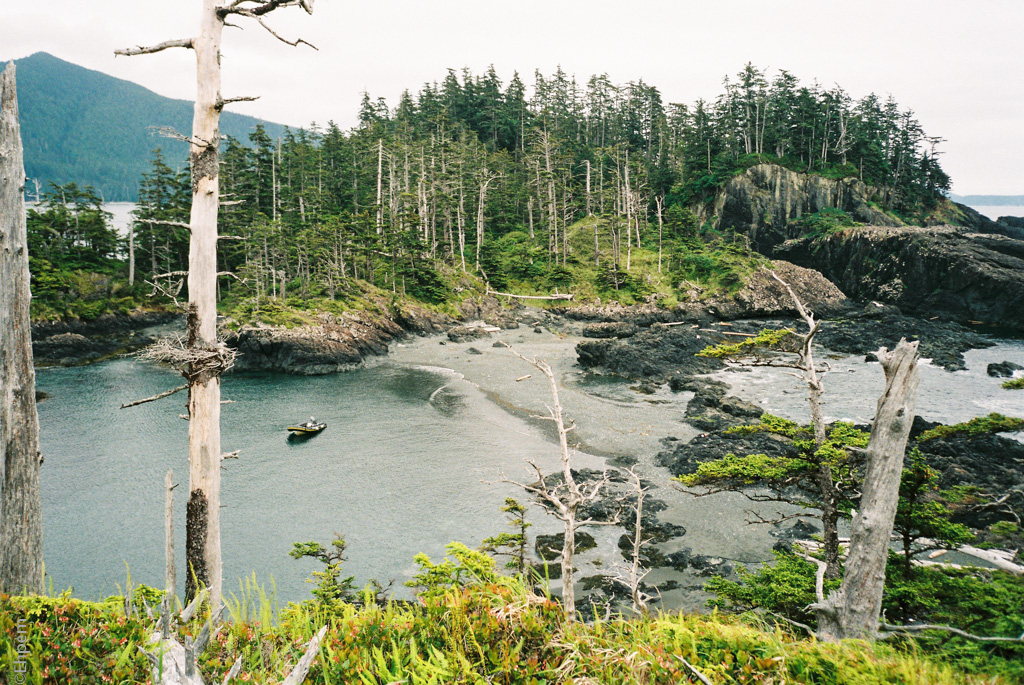 Faintly visible in the distance is SGang Gwaay, the World Heritage Site.