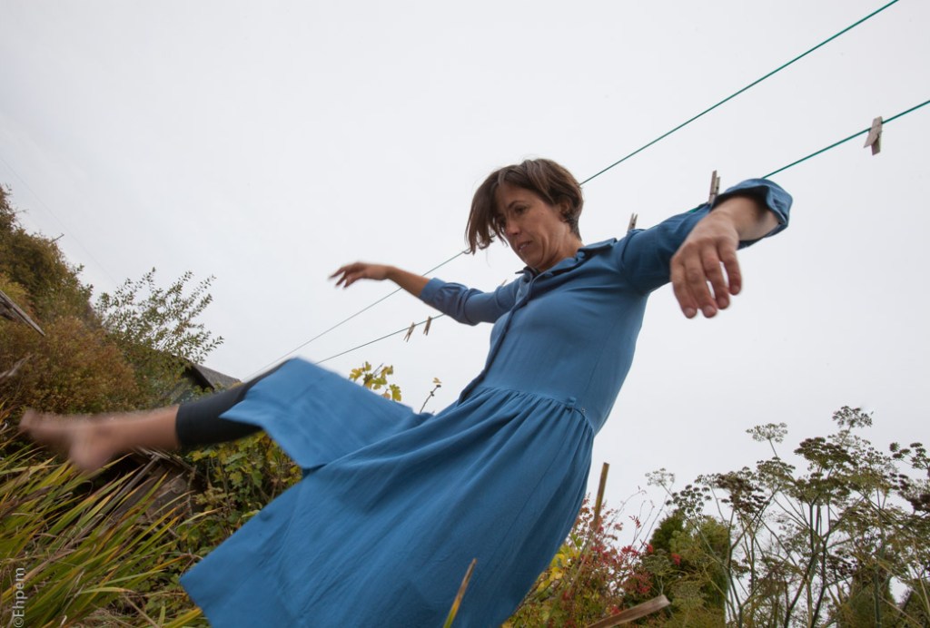 Stacey is dancing in an upcoming performance called The Line. Our laundry line was needed by choreographer Lori Hamar to make some photos for advertising her show. This is how The Line is described in a flier (link):