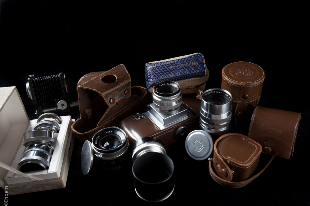 The Asahiflex is historically important to the development of 35 mm SLRs. But I think it is made even more interesting by being part of an apparently contemporaneous kit. This is what I purchased: