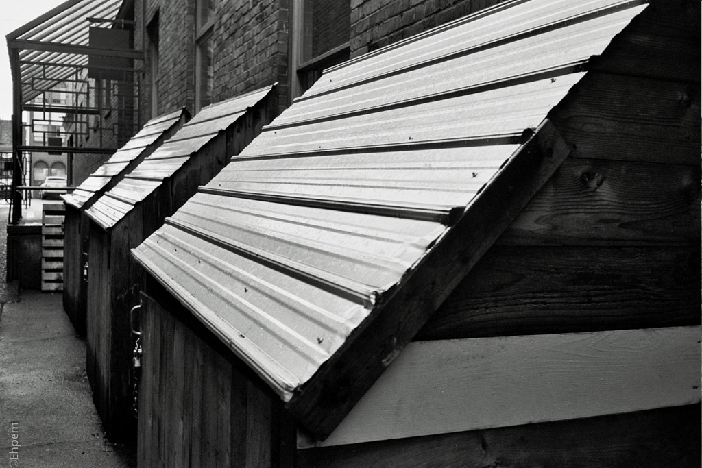 Downtown in Chinatown, this narrow alley has lots of metal siding.