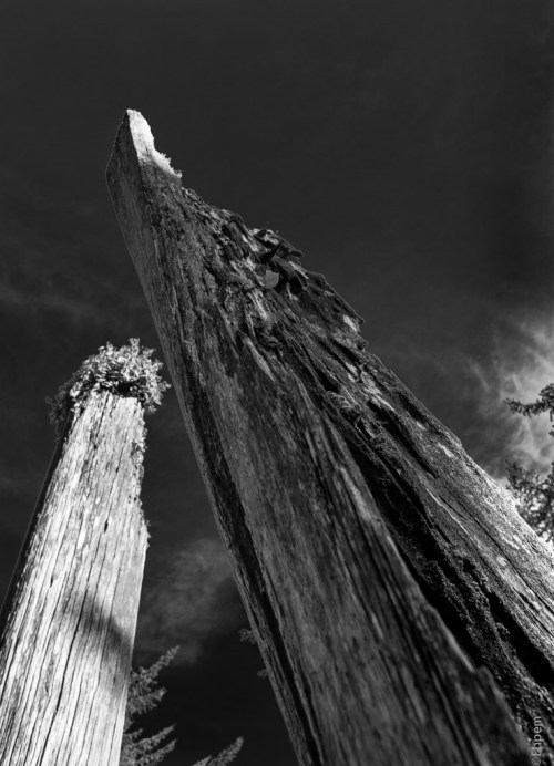 Great photos, ehpem. The poles appear to have deteriorated considerably since I was last there. I see vegetation growing on top of at least one, is it not being trimmed back any longer?