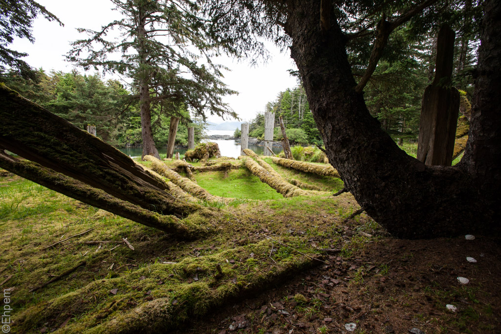 Looking from the back of the Haida Chief Xoyas’ house at SGang Gwaay.